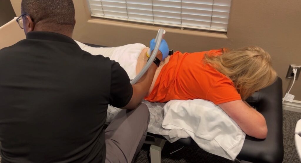 Shockwave Therapy is a noninvasive treatment designed to help your body heal when pain has become chronic or stubborn. It uses focused acoustic sound waves to stimulate injured tissue, increase blood flow, and restart the body’s natural repair process.